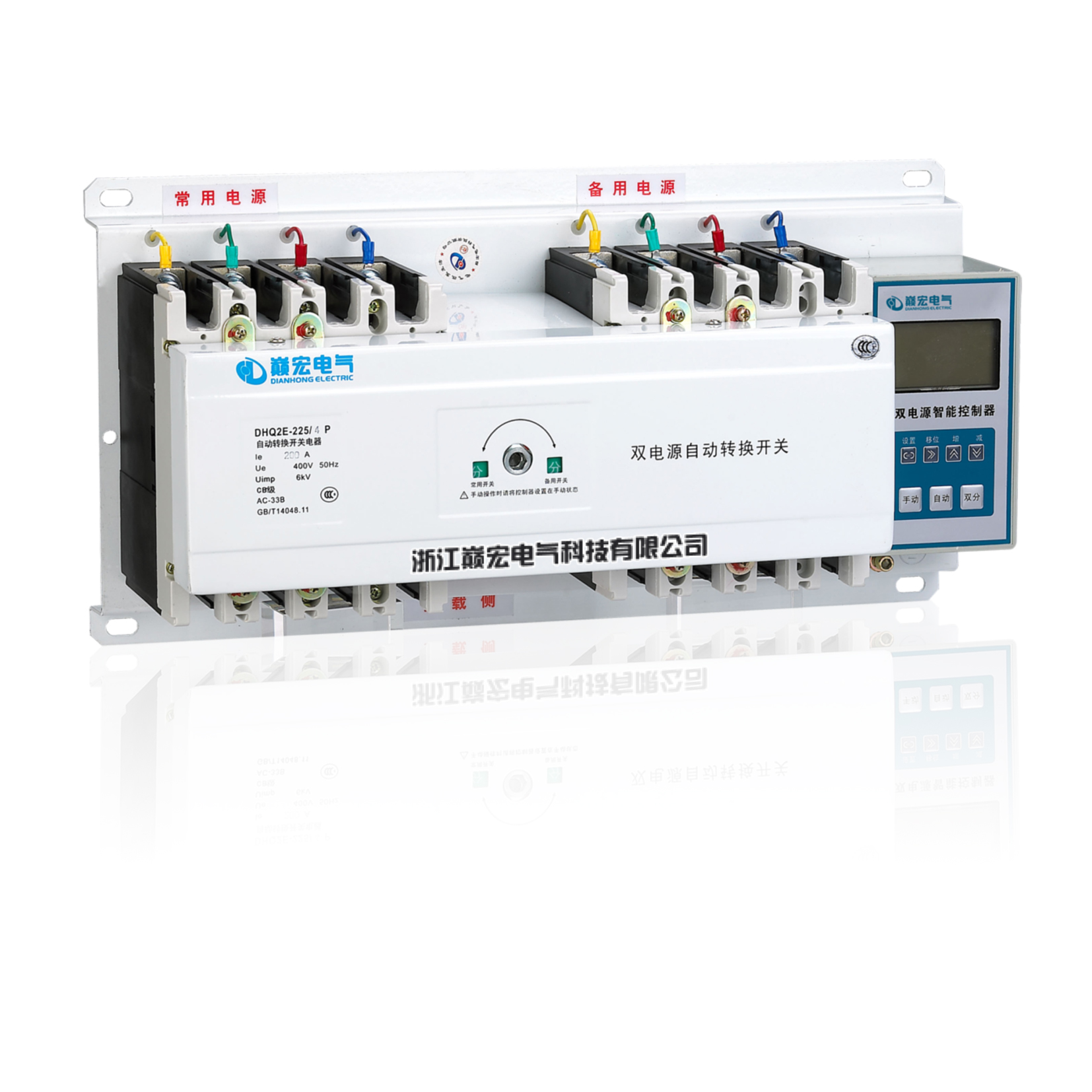 DHQ2系列双电源自动转换开关(以下简称双电源),它适用于交流50Hz/60Hz,额定工作电压400V、额定工作电流10A~1600A的供电系统,能实现常用电源(N)与备用电源(R)之间的自动或手动切换。特别适用于需要消防需求的写字楼、商场、银行、高层建筑、医院、剧院、矿业及军事设施等的照明线路用。
